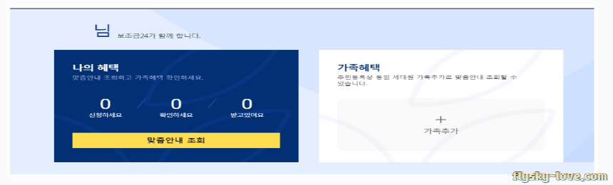 후에 가족 맞춤 안내로 조회하게 되면 가족 동일