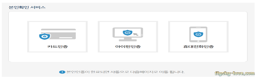 카드인증, 아이핀 인증, 휴대전화인증 등 세 가지의